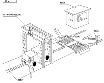 清洗方式:滾軸動力、旋轉(zhuǎn)車輪、車輛自行通過式 滾軸動力旋轉(zhuǎn)車輪